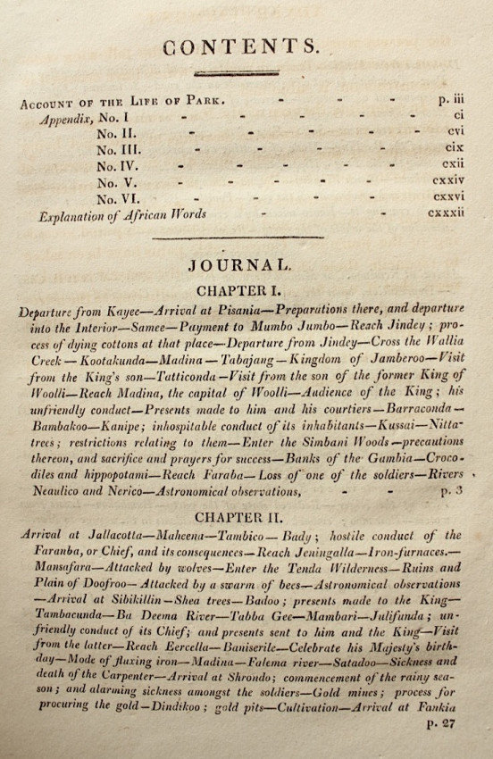 "JOURNAL OF A MISSION TO THE INTERIOR OF AFRICA, IN THE YEAR 1805. TOGETHER WITH OTHER DOCUMENTS, OFFICIAL AND PRIVATE, RELATING TO THE SAME MISSION, TO WHICH IS PREFIXED AN ACCOUNT OF THE LIFE OF MR. PARK."