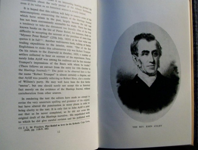 The Rev.John Ayliff, 1820 Settler and one of the pioneer missionaries of the Eastern Cape, left among his papers an unfinished manuscript, here published in full for the first time under the title The Journal of Harry Hastings.Albany Settler.