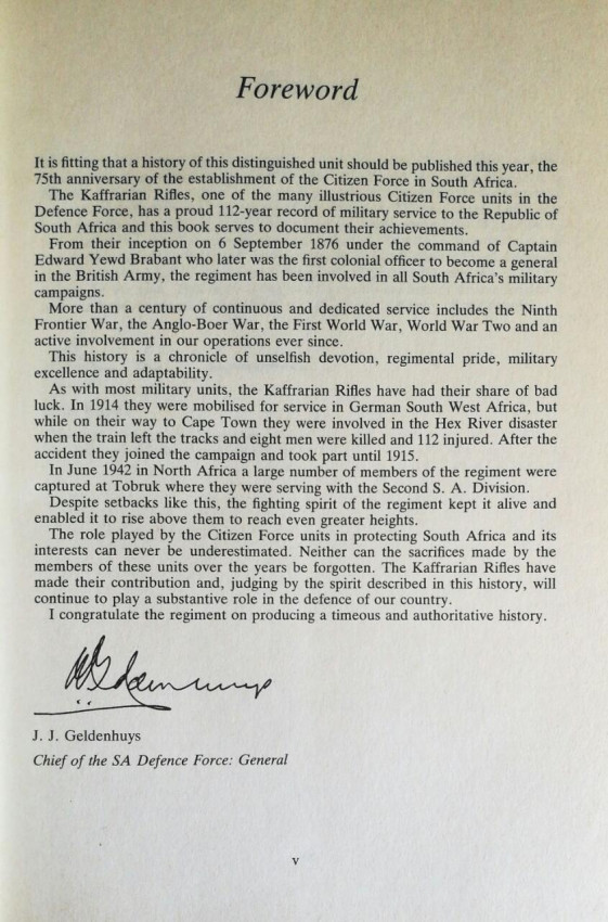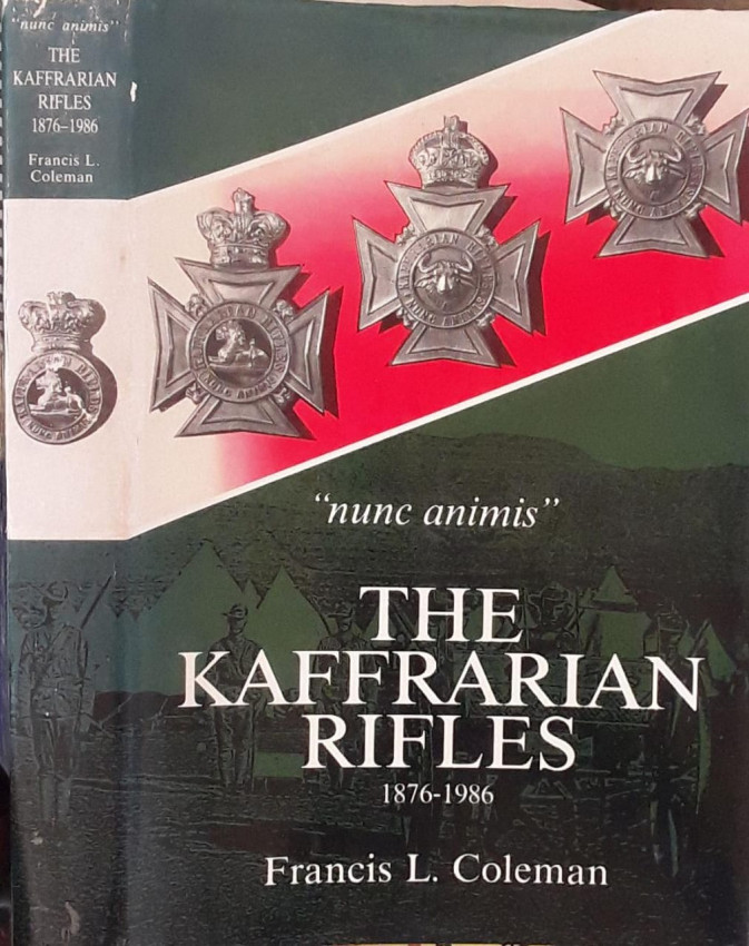 Laminated dustjacket printed in red, green and black, green cloth-boards with gilt regimental medal and buffalo design and lettering to the upper panel and spine, plain endpapers, and 327 pp of b/w-illustrated text and maps