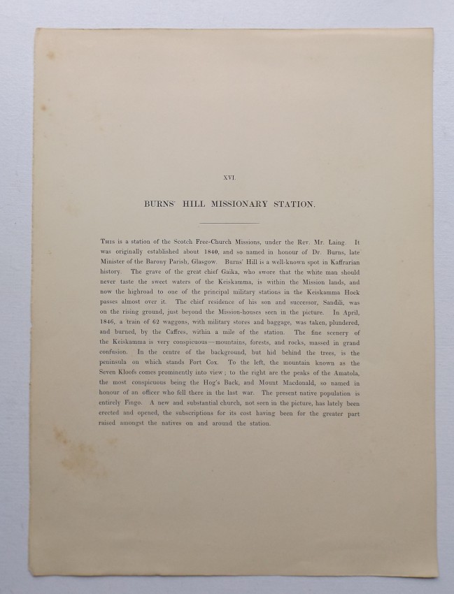 Burns' Hill Missionary Station; Yellowwood Drift, Lenye Valley;
