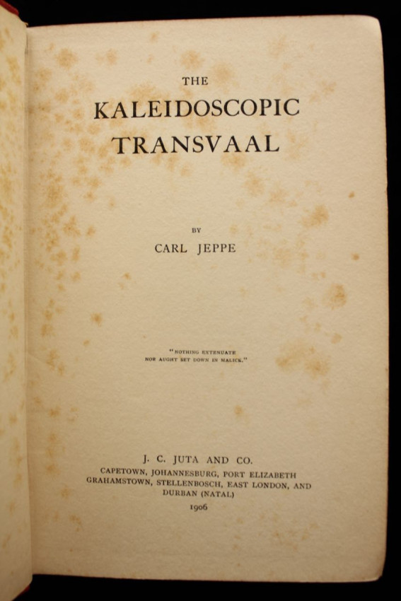 Judge Carl Jeppe (1858-1933) was the brother of Witwatersrand mining magnate Julius Jeppe. He arrived in the Transvaal in 1871 and in 1876 took part in the war against Sekhukhune as an adjudant under the command of Col. I.P. Ferreira. He joined the Transvaal civil service in 1877 and was public prosecutor in the Waterberg, where he regularly also had to regularly act as magistrate. In 1886 he was member of the Diggers' Committee and in 1888 he was chairman of the First Chamber of Mines. President Kruger appointed him a member of the conciliation committee after the Jameson Raid and in the years following the Second Anglo-Boer War he was judge of the Water Court.