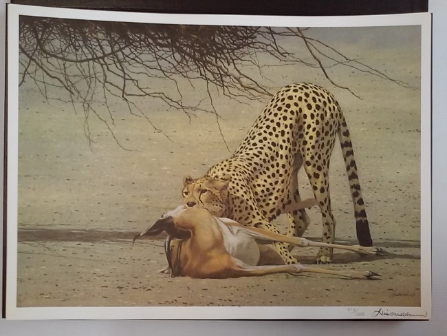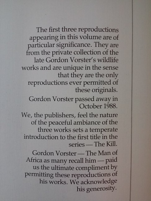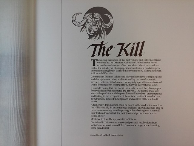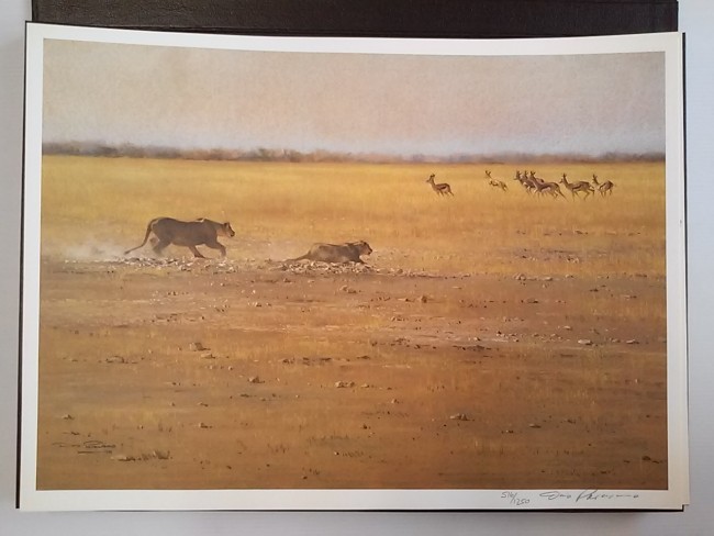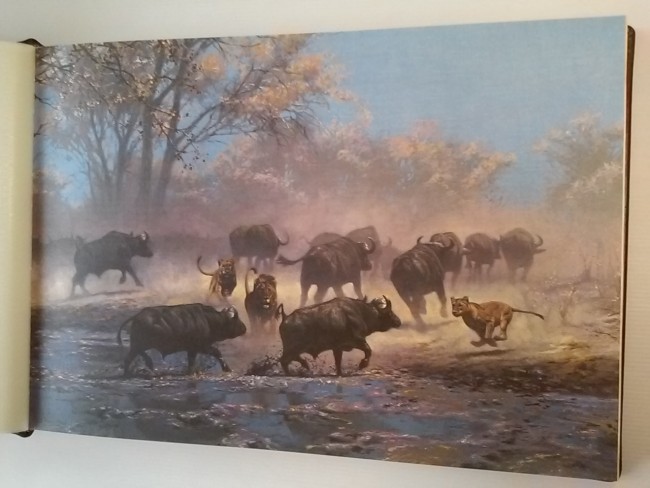 A sumptuous and beautifully bound collection of approximately 60 works of art (with adjacent notations) inspired by the wildlife and predators of southern Africa. The book is bound in full leather with gilt spine and cover titles.