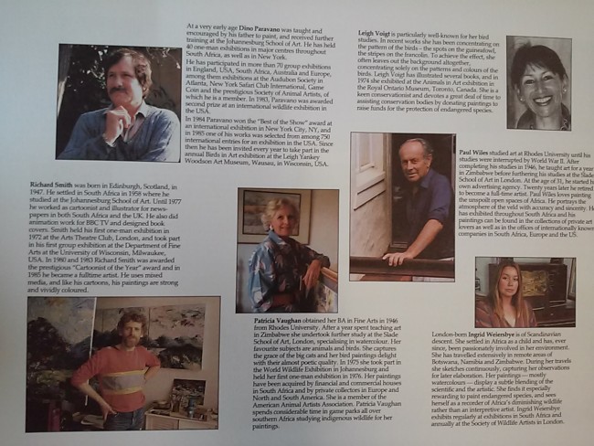 Artists included are: Dino Paravano, Z.Eloff, Keith Joubert, P.A.Clancey, Paul Argentinus, Alan Ainslie, Patricia Vaughan, Ingrid Weiersbye, Kim Donaldson, Vic Guhrs, Pam Guhrs, Richard Smith, etc...