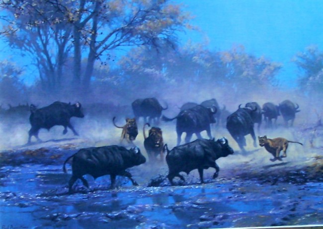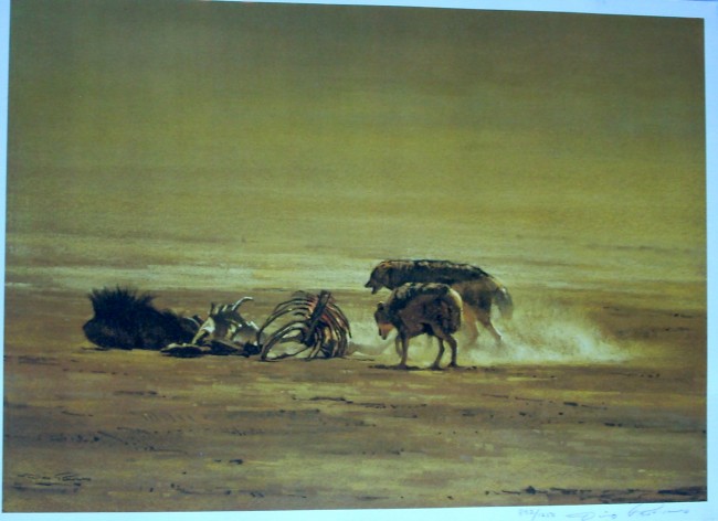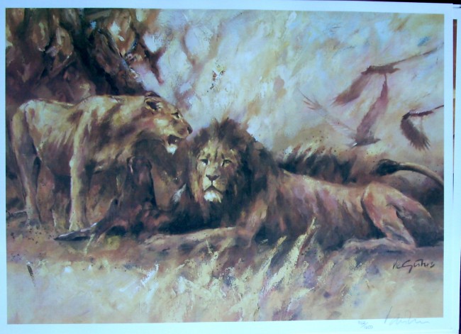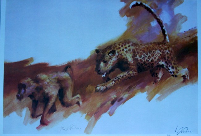 Number 862 of an edition of 1250, The Kill, Wildlife Encounters, compiled by James M. Penrith, Nelia van Velden, Anthony D.Davidson, foreword by David Shepherd, Scientific adviser, professor John Skinner,large format,full leather casing with gilt lettering, 430 x 303mm, portfolio contains 45 limited edition full-colour wildlife reproductions signed by the artists, , some tissue guards loose, condition of book: good, condition of portfolio: very good.