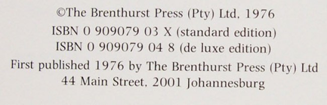 This is the second title in the First Brenthurst Series. Standard edition limited to 850 copies.