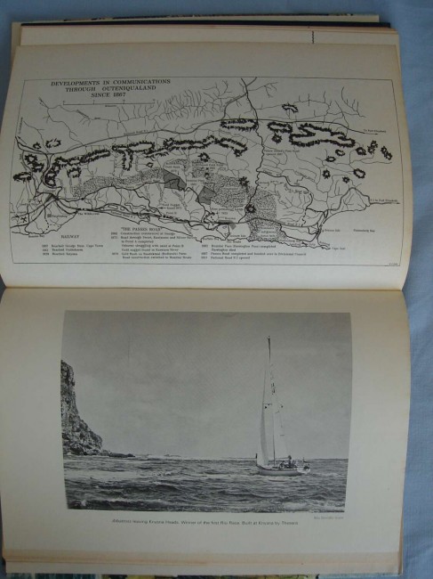 38 illustrations, including colour and black-and-white photographs. 4 maps. Endpapers show a chart of the Knysna, surveyed by James Callander. Pages 1-152. Dust jacket in very good condition. Remains of sellotape on inside of jacket. Book condition very good. Title page slightly discoloured by earlier insertion of newspaper cutting.