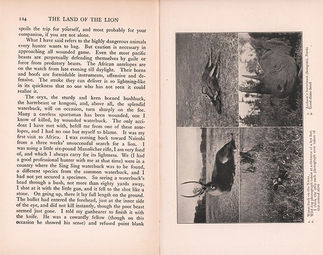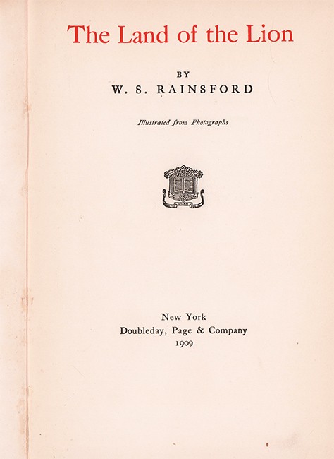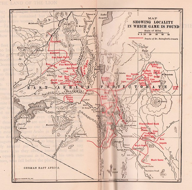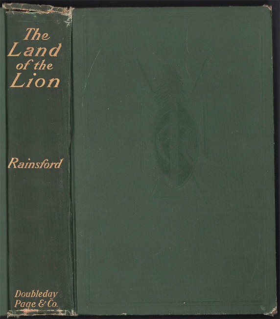 Czech (Kenneth) AN ANNOTATED BIBLIOGRAPHY OF AFRICAN BIG GAME HUNTING BOOKS 1789 -1999 page 229: Rainsford's 'sefari' trekked through British East Africa where a variety of game was bagged. After crossing the Mau Escarpment, the author's party hunted lion,buffalo and rhino, then elephant near Mt Elgon. Later, rhino and buffalo were taken near the Guaso Nyiro. He remarked that shooting elephant with a .500 or .577 were outmoded – a .256 Mannlicher or .275 Mauser would do perfectly well. There are plenty of big game hunting adventures throughout.