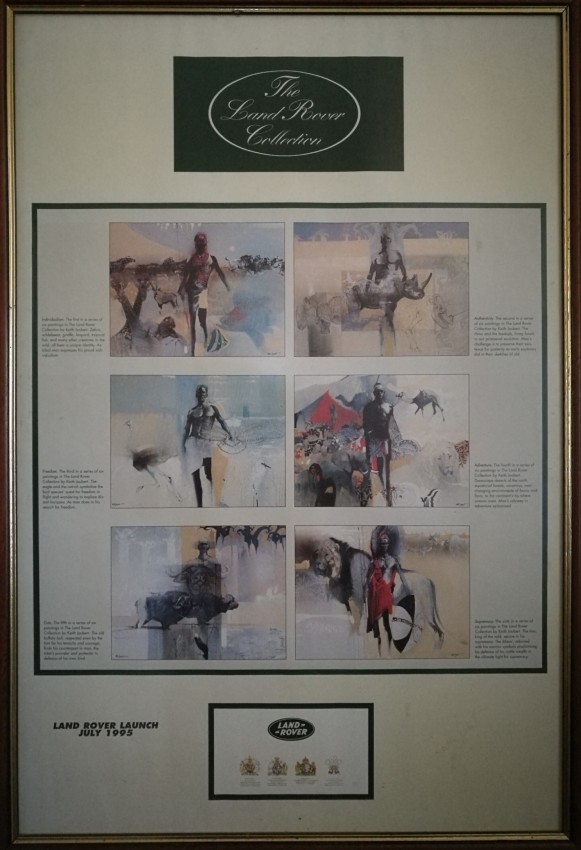 Large framed poster with reproductions of six paintings by Keith Joubert: