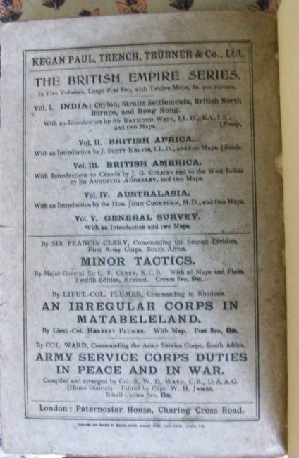 It has been suggested that at this juncture some students of South African history might be glad to read an account of the Boer Rebellion of 1881, its causes and results. Accordingly, in the following pages are reprinted portions of a book which the author wrote so long ago as 1882. It may ne objected that such matter must be stale, but he ventures to urge, on the contrary, that to this very fact it owes whatever value it may possess. This history was written at the time by one who took an active part in the sad and stirring events which it records, immediately after the isue of those events had driven him home to England. Of the original handful of individuals who were concerned in the annexation of the Transvaal by Sir Theophilus Shepstone in 1877, of whom I was one, not many now survive...xxx plus 244 pages text. Odd crease. Very clean copy.