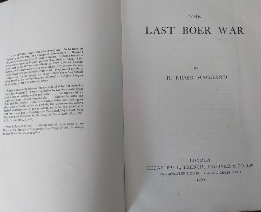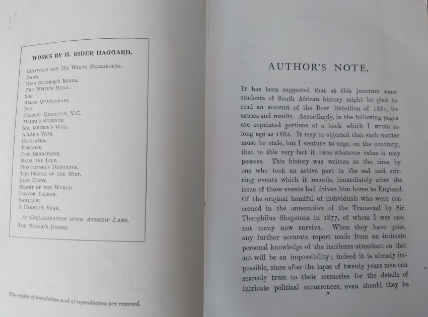 Original grey wrappers pictorially decorated in brown and black. First edition, which consisted of 5,000 Copies-Fewer than the number of copies for most all Haggard's fiction tittles. This is an abridged version (With New Preface By Haggard) of his first book, Cetywayo And His White Neighbours, which dealt with the last Boer war Of 1877-1881. This tittle is one of Haggard's most difficult to find in acceptable condition. It is his only book-length title that was published in England only in wrappers. This is a very good copy.