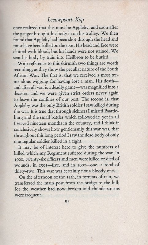 Author was with the West Kent Mounted Infantry. His duties seem to have avoided any major engagements, but nevertheless a tale of his experiences and, as he says himself, "In his 'Commando' Deneys Reitz has given us one view of the South African War, and here I give another, not so thrilling, I admit …".