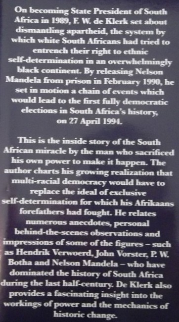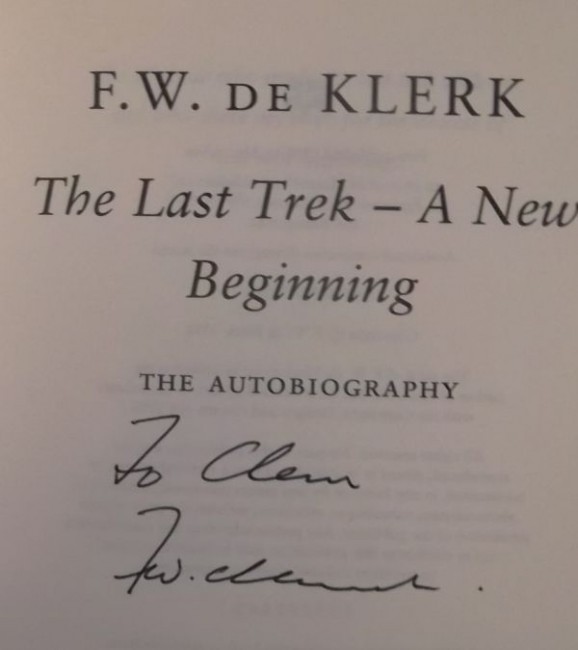 HARD COVER - VERY GOOD CONDITION - SIGNED AND INSCRIBED - BY F W DE KLERK - BLACK AND WHITE ILLUSTRATIONS -