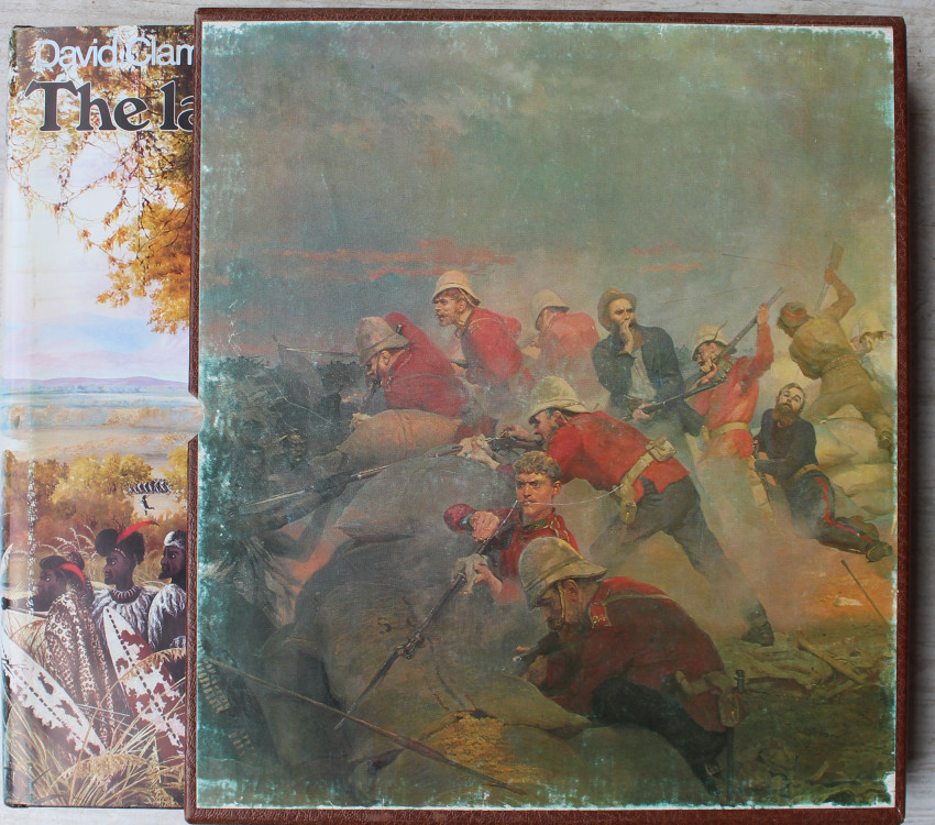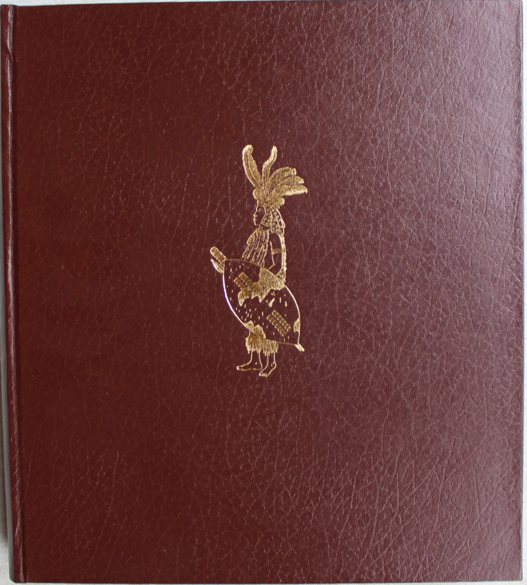 Publisher's brown hardcover binding with gilt vignette of Zulu warrior in battle dress on front panel and gilt titles on spine. Pictorial panorama dust jacket.