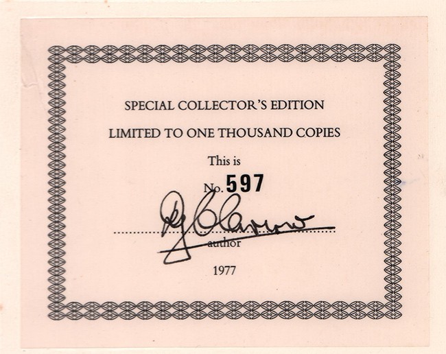 No 597 of a Special Collectors Edition limited to one thousand copies signed by the author.