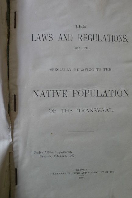 In his introduction, the compiler notes that his publication is designed to give "in a convenient shape" extracts from the various laws etc "affecting natives in the Transvaal".
