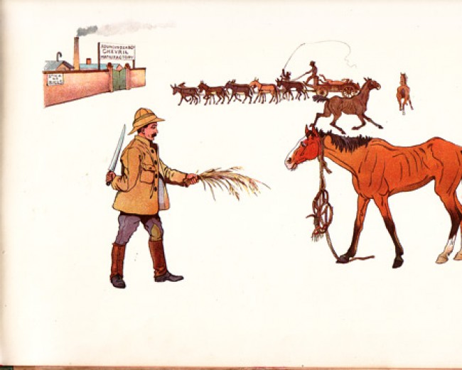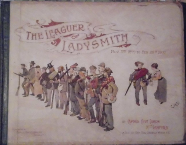 18 Full page humorous coloured plates drawn over the four months siege of Ladysmith.. 18 pp. Bevelled edge boards, covers somewhat marked and edges worn, ownership on endpapers, which have had the top corner clipped. Plates in good, clean condition