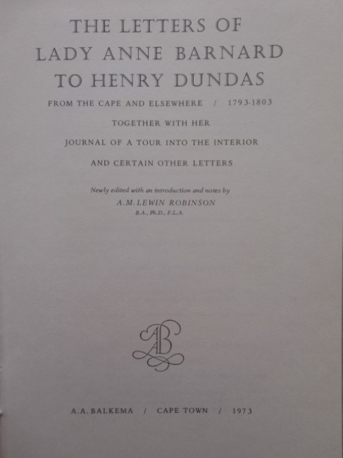 " . . . from the Cape of Good Hope 1793-1803, together with her journal of a tour into the interior from Cape Town to beyond Stellendam. An observant, amusing & highly-personal account of domestic life at the Cape. With one hundred illustrations and a panorama of Cape Town"