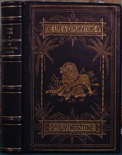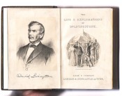 Octavo pocket edition of the huge \'Livingstone Bible\' as Adam\'s deluxe version has become known. In black calf with a lavish gilt depiction of the great man in the claws of a lion. 324 pp with folding map and sepia plates, aeg. Rebacked in black calf, with original boards front and back, with new eps. Good condition except for light occasional handling marks and isolated spots of foxing