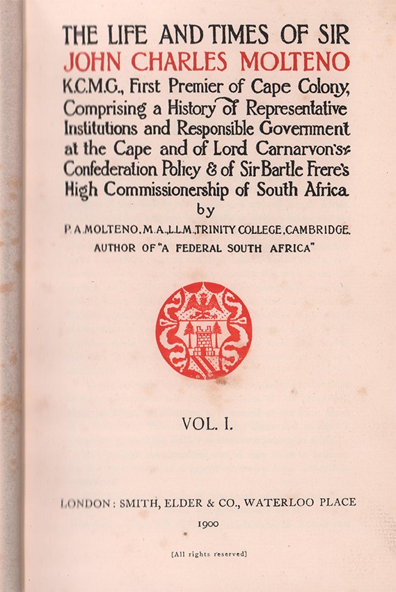 Ownership signature of J.C. Molteno on the half title page of both volumes