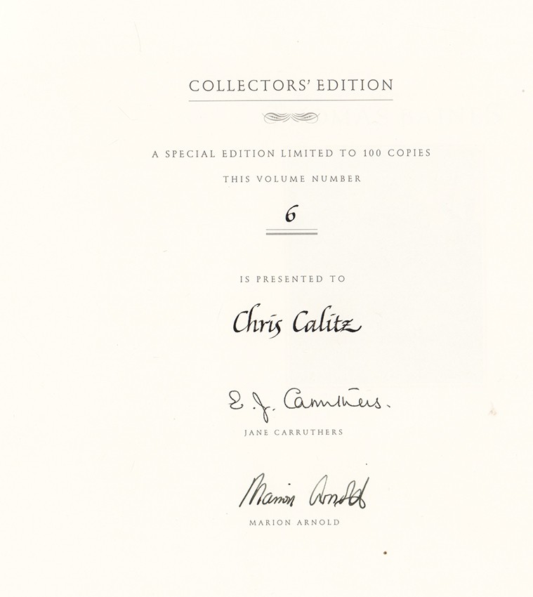 No. 6 of the Collectors' Edition of 100 copies inscribed to Chris Calitz and signed by Jane Carruthers and Marion Arnold.