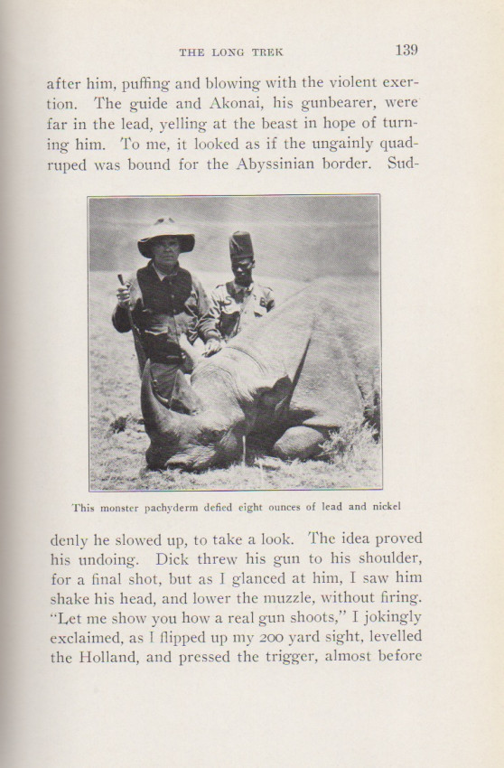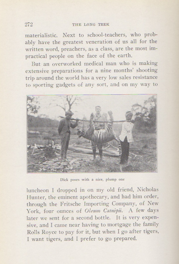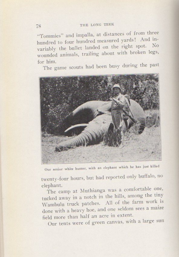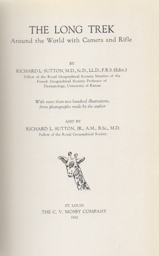 The author and his son proceeded on a long journey to Tanganyika for a wide variety of game before heading to the hunting fields of southeast Asia. In the Muthianga Hills, elephant and buffalo were bagged, with numerous rhinoceros taken in the Endowash area. Lion and leopard were collected in Masai territory as well as a selection of plains game. His second sporting trip was to Annam (Vietnam), where he combines hunting thrills with liberal doses of sightseeing. Near the Song Gieng River in Annam, he bagged several tiger. There are additional hunts for banteng and sambur. In his opinion, "the finest and best gun in the world is a Grade A double rifle of London make." Original orange pictorial cloth, small bump to upper corner. Previous owner's bookplate on front pastedown. Well illustrated with numerous text photos. The dust jacket shows two sealed tears at spine are rear board, and a pair of scuffs with loss on the spine. The book itself is quite clean and tight.