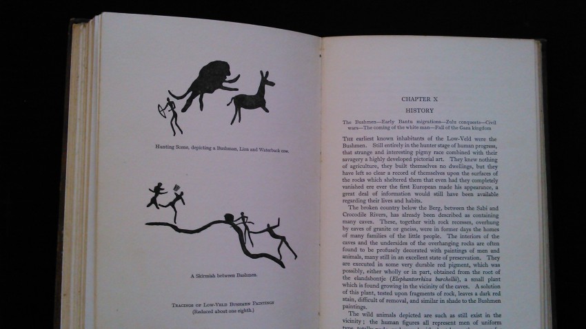 General map of The Low-veld on the front/back pastedowns and endpapers. Second front endpaper in missing, and has some marks on the front/back boards, also has small ink stains on the top/right back board.