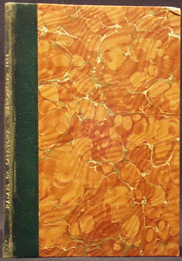 39 pages, wood engraving of a Malay figure opposite the contents page, bound in quarter green leather with gilt titling along the spine, marbled paper sides, a very good copy.