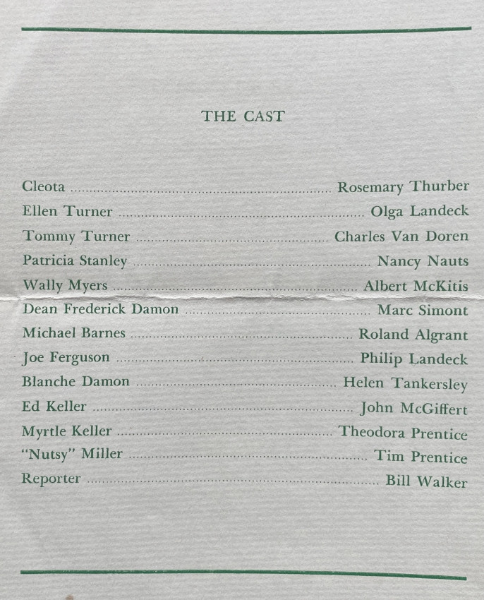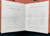 James THURBER (1894-1961) and the Cornwall, Ct, connection. The Cornwall Players present The Male Animal ... August 27 ... 28, 1948. [Cornwall, Ct.: 1948]. Small square quarto, 4pp. printed in green with an adapted illustration after Thurber on the lower cover. (Light creasing [see images]) The talented younger generation mount an entertainment in Cornwall: the cast and technical 'crew' includes Rosemary Thurber (James' daughter), two van Dorens (Charles and John), two Prentices (Tim and Theodora), two Landecks (Olga and Philip). The slightly older Marc Simont played Dean Frederick Damon as well as painting the 'Special Backdrop'.