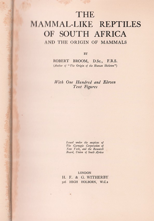 Loosely inserted are several letters by Robert Broom to Dr Luckhoff on palaeontological issues.
