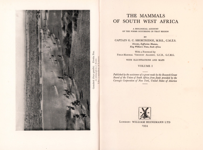 During 1933 he went to London on 12 months' leave to complete his most important publication, The mammals of South West Africa: A biological account of the forms occurring in that region (London, 1934, 2 vols). The book dealt with about 200 mammal species, providing details of their appearance, habits and distribution, and earned him a lasting reputation among zoologists.
