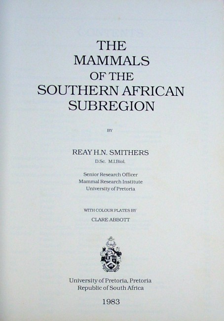 The author was the senior research officer at The Mammal Research Institute and former director of National Museums in Rhodesia. With over 2000 references listed, this work is of national significance as to the detail of the magnitute of the indigenous fauna presented. (from the foreword).