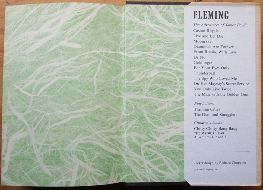 - The Bond titles listed in the front of the book differ from that listed on the back flyleaf; the former ends with 'You Only Live Twice' and the latter ends with 'The Man with the Golden Gun'.