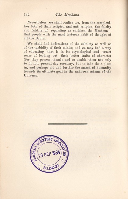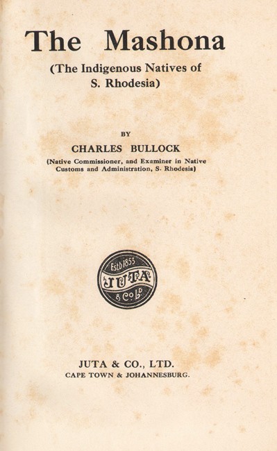 400 pages, glossary, index, red cloth gilt. Light foxing on the preliminary pages including the title page, stamp of the Rhodesia Scientific Association on the front free endpaper and elsewhere in the text.