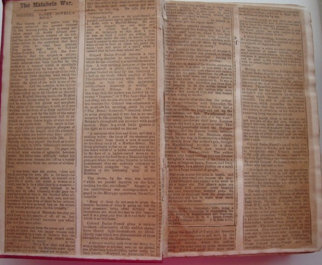 Baden-Powell was with the 13th Hussars. He writes an almost photographic description of events of the 1896 campaign in Matabeleland and Mashonaland, which includes an interesting chapter on Scouting work in war. A lively description, and a chatty style make it interesting reading, as is the preface to his Mother.