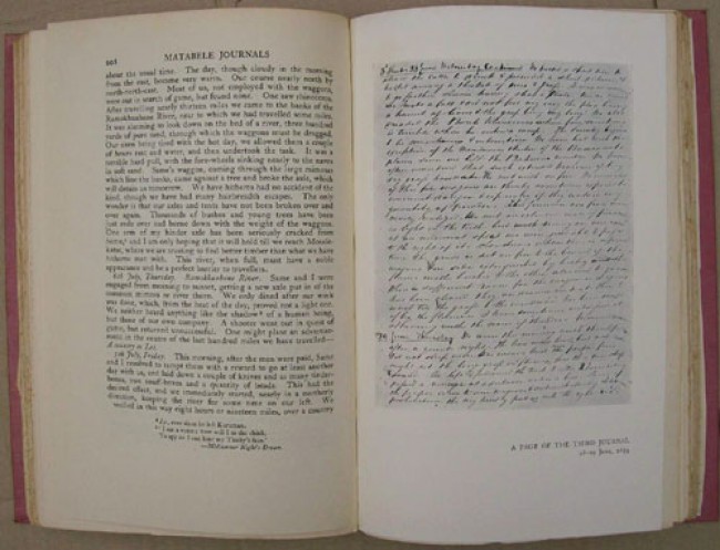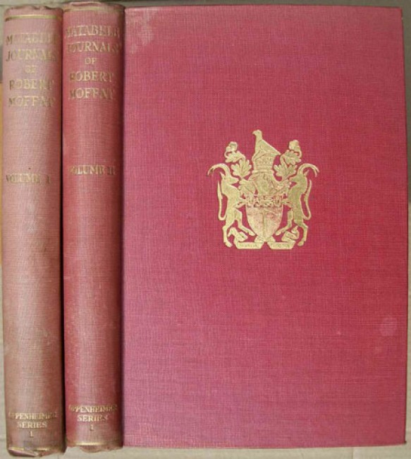 Original red cloth boards with gilt titling on the spine and a coat of arms gilt device on the upper boards. Top edges gilt. Volume one has xv prelims, 382 pages, a full colour frontis, 2 black and white plates and a folding map at the rear. Volume 2 has 10 prelims, 295 pages, 3 black and white plates and the folding map at the rear.