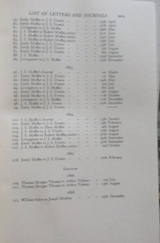 (5) Remnants of J.S. Moffat's jounals. He kept a full and valuable diary which, after copious extracts had been reproduced in R. U. Moffat's "Life", was almost completely suppressed. The extant remains show how great a loss early South Rhodesian history has suffered thereby.
