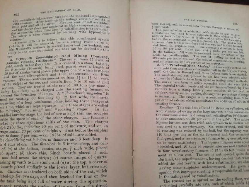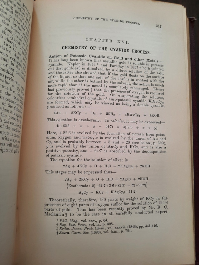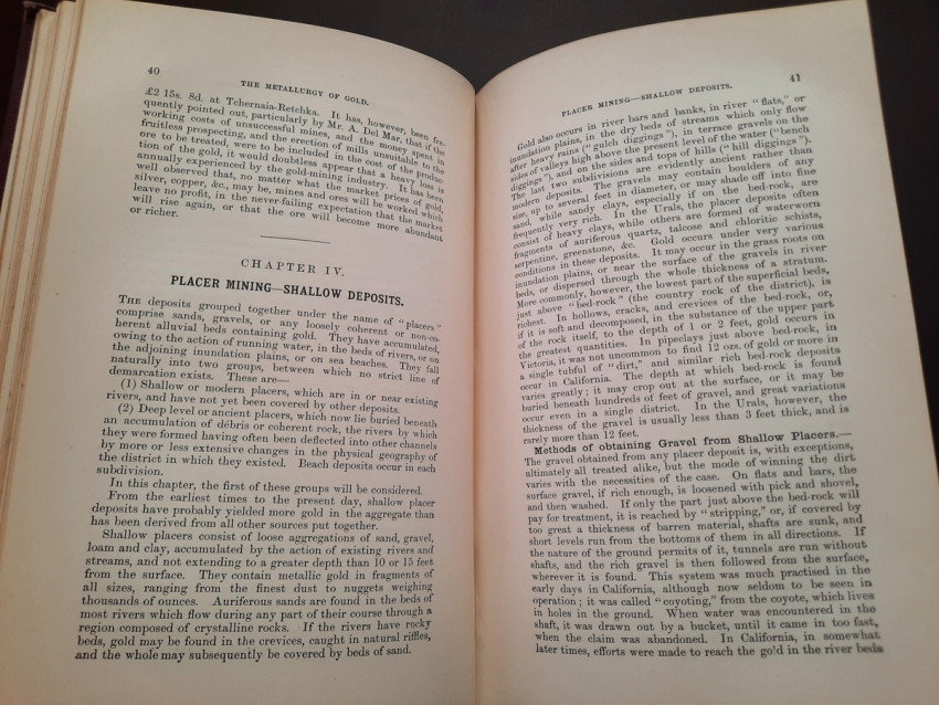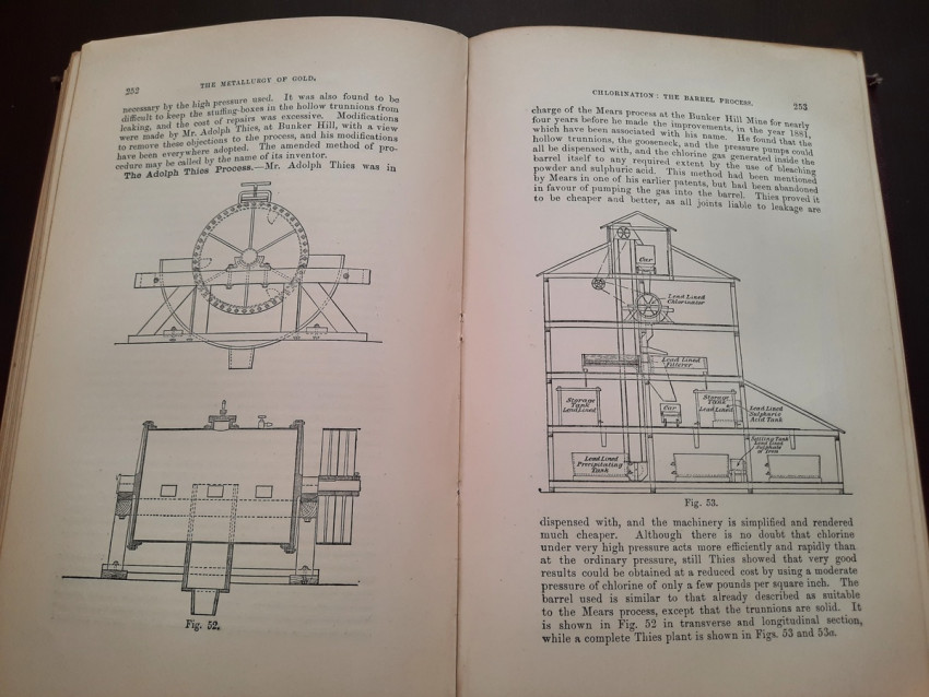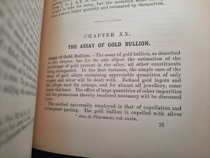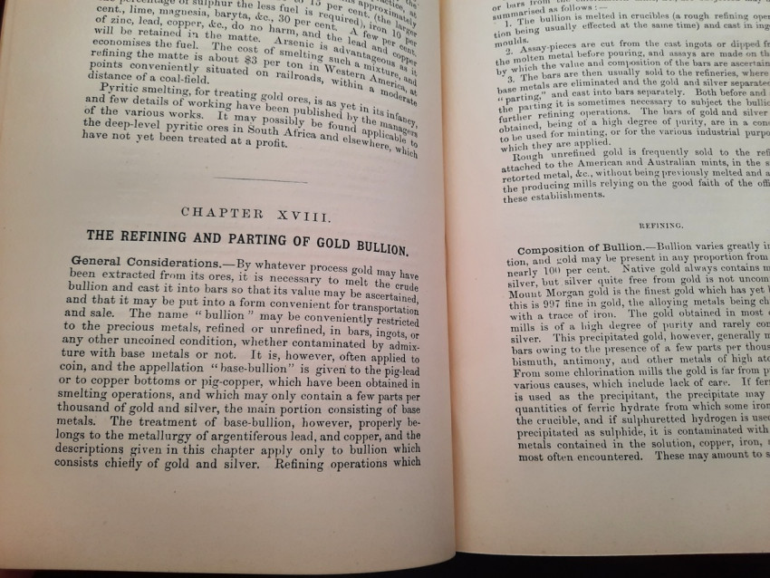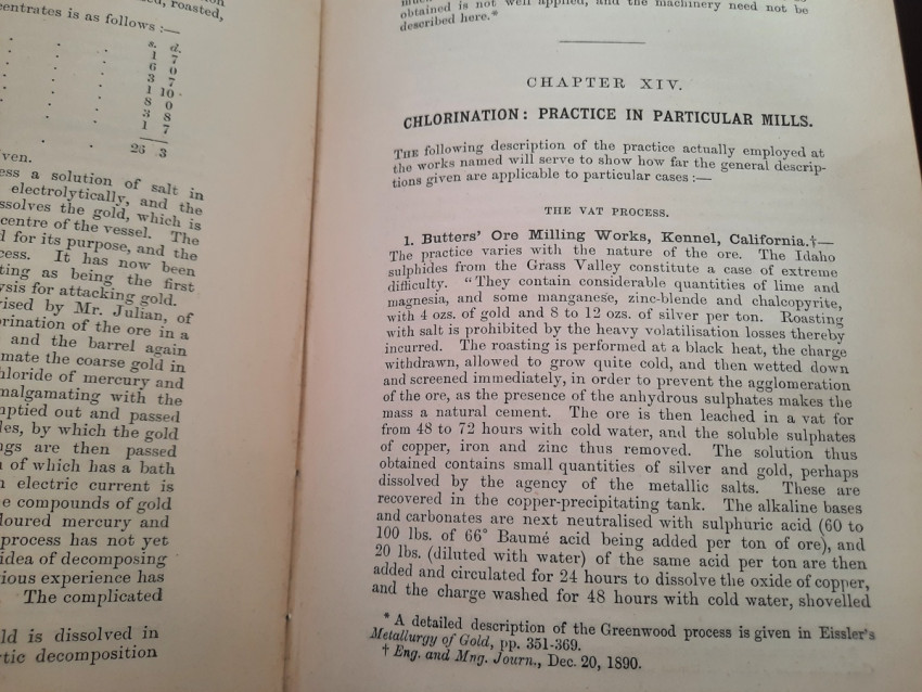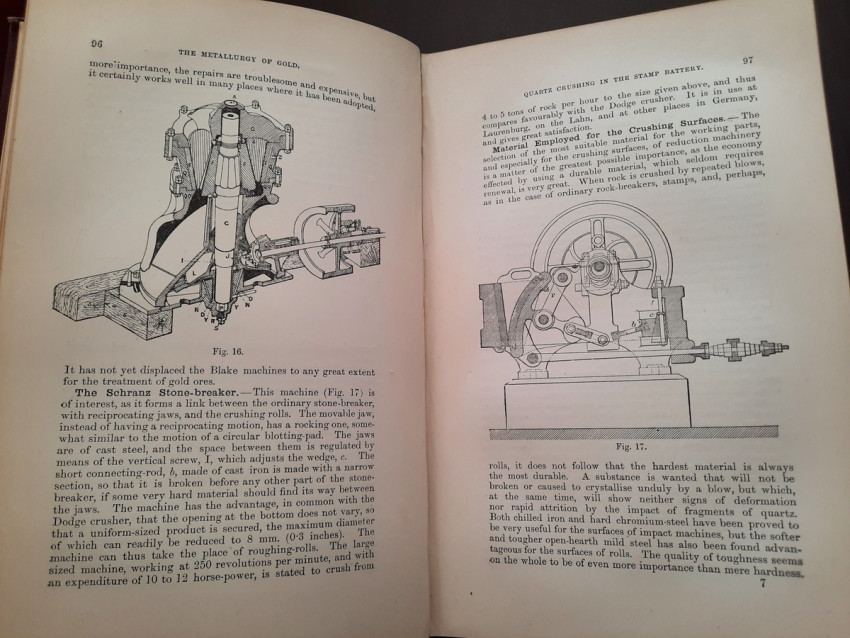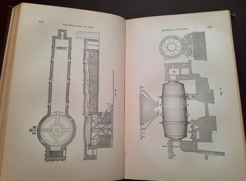 A first edition of this fascinating work. Rose's treatise on the metallurgy of gold, part of a series on metallurgy issued by the Royal School of Mines. Supplying the reader with a succinct summary of the existing condition of the metallurgy of gold at the tail end of the Victorian era. Looking at the proprieties of gold and its alloys, chemistry of the compounds of gold, deep placer deposits, quartz crushing in the stamp battery, chlorination, the refining of gold bullion, and more. Illustrated with 69 in-text illustrations throughout and many diagrams, tables, formulas, extensive bibliography, and index. Including "Stamp battery practice in the Transvaal" (the account mainly based on information supplied by Mr. S.H.Farra M.I.C.E., F.G.S., M.I.M.E., of Johannesburg - Apendix B.).