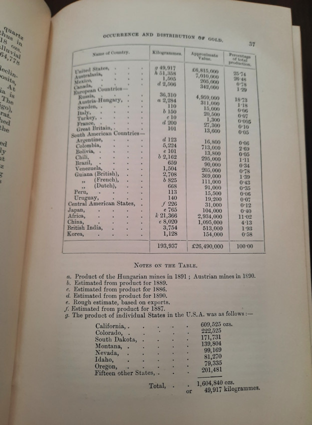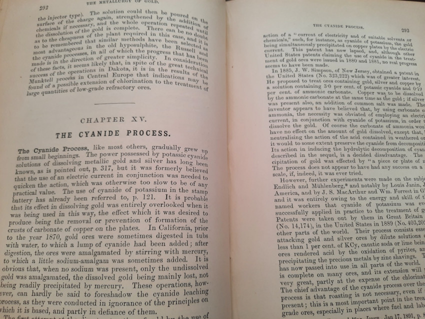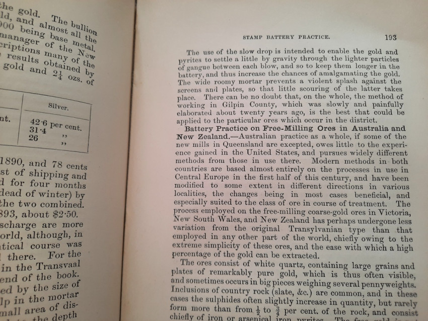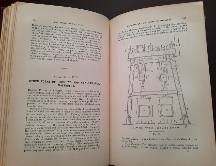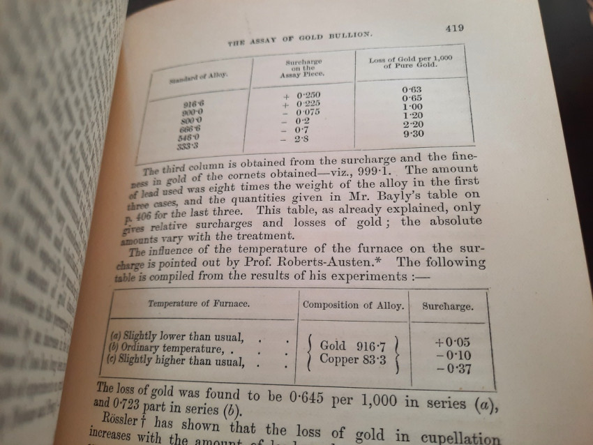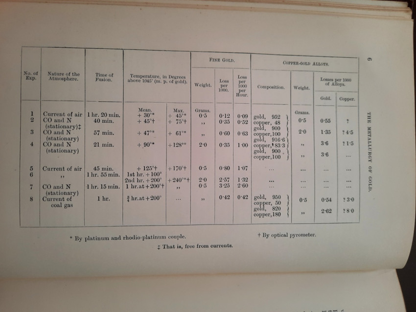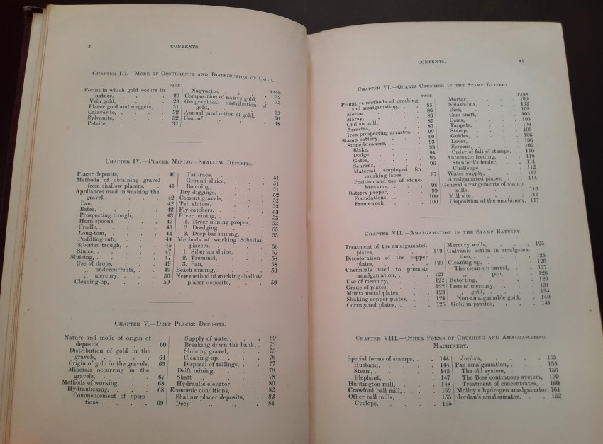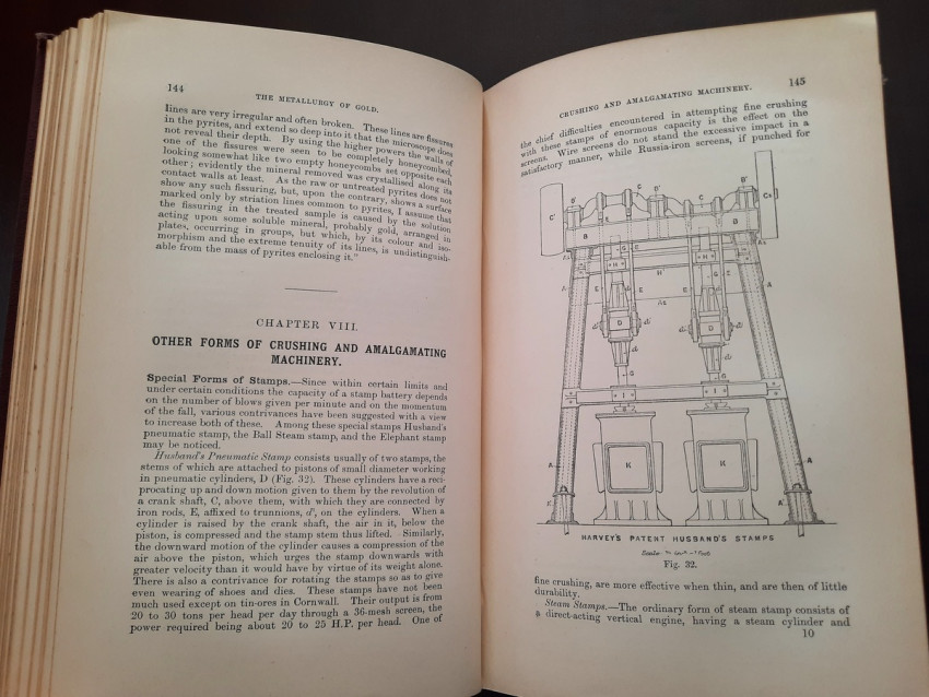 A first edition of this fascinating work. Rose's treatise on the metallurgy of gold, part of a series on metallurgy issued by the Royal School of Mines. Supplying the reader with a succinct summary of the existing condition of the metallurgy of gold at the tail end of the Victorian era. Looking at the proprieties of gold and its alloys, chemistry of the compounds of gold, deep placer deposits, quartz crushing in the stamp battery, chlorination, the refining of gold bullion, and more. Illustrated with 69 in-text illustrations throughout and many diagrams, tables, formulas, extensive bibliography, and index. Including "Stamp battery practice in the Transvaal" (the account mainly based on information supplied by Mr. S.H.Farra M.I.C.E., F.G.S., M.I.M.E., of Johannesburg - Apendix B.).