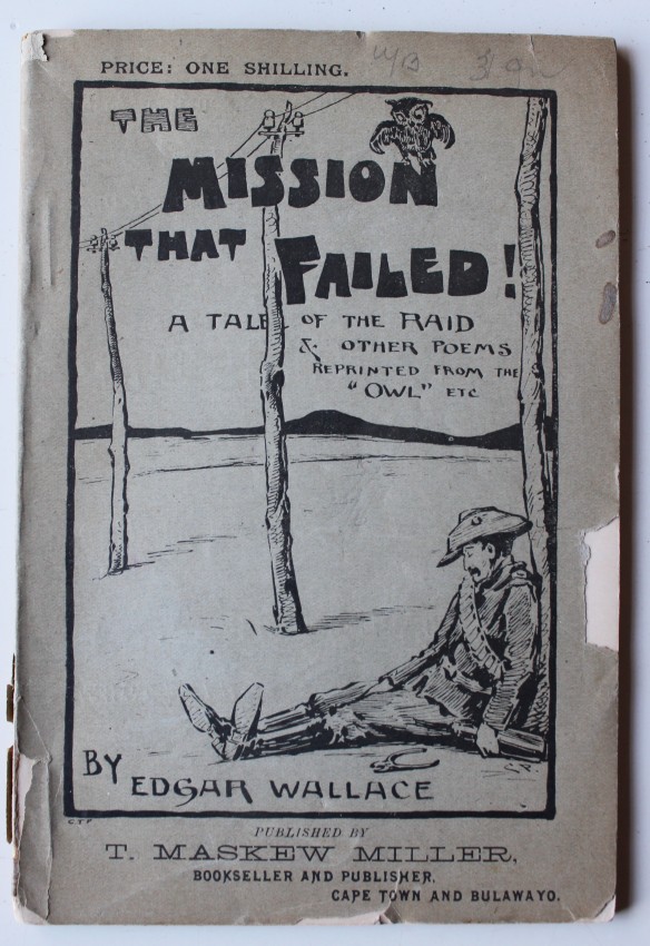 First edition, first impression of this prolific author's first book. The title refers to the Jameson Raid. In his later years Wallace became a scriptwriter and co-authored the screenplay for King Kong, his last book. Contents clean with no inscriptions, frontispiece of the author. Some chipping along the edges of the wraps on the front and rear panels and spine tail. 52 pages.