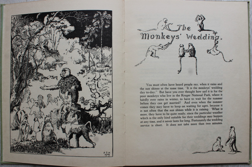 Black and white ink drawings of wildlife throughout the book, the illustrations by Hilda Stevenson-Hamilton.