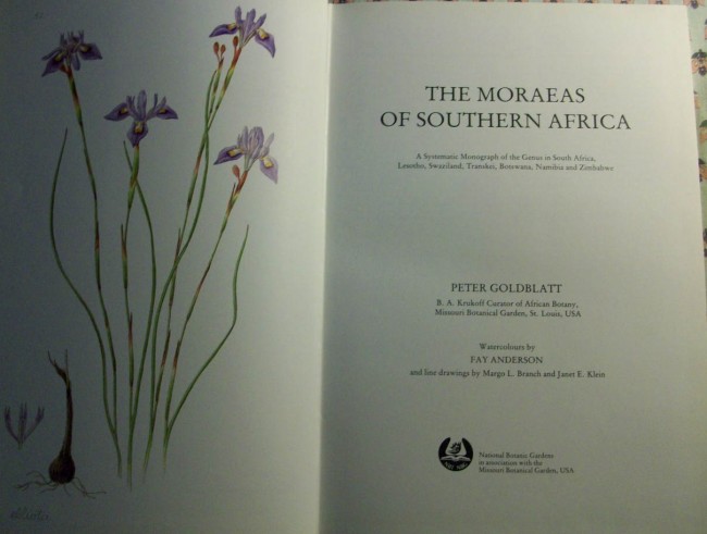 The Moraeas of Southern Africa-A Systematic Monograph of the Genus in South Africa, Lesotho, Swaziland, Transkei, Botswana, Namibia and Zimbabwe, by Peter Goldblatt, with Watercolurs by Fay Anderson and line drawings by Margo.L.Branch and Janet E. Klein.