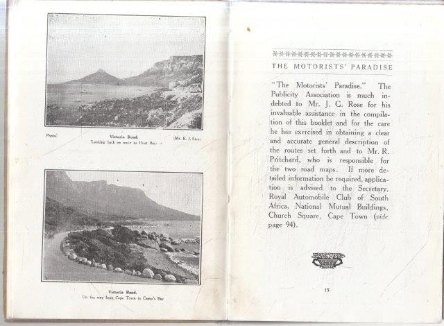 A book aimed at encouraging the timid to rush out to buy a motor car and explore the Peninsula. Beautiful photographs of parts of the very beautiful and untouched Cape Peninsula such as Camps Bay, Hout Bay etc.