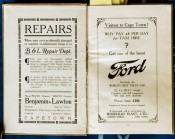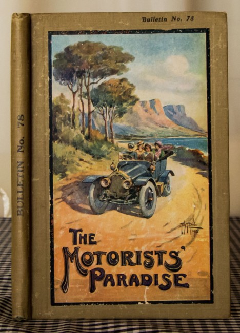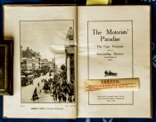 Beige cloth-boards with colour illustration pasted to the front cover, black lettering to the spine, and advertisements on the back and inside covers. 120 pp of advertisements of the motoring scene a century ago, text and illustrations + 2 inserted maps + inserted order form for 16 of the Association's free publications + errata sticker.
