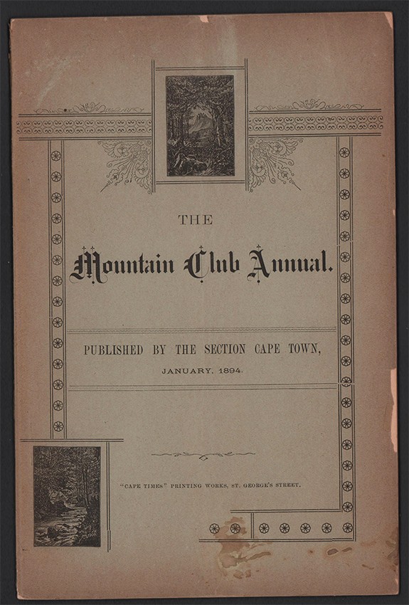 ‘In the year 1893, over a century ago, horse-drawn carts and carriages rattled over the cobbled streets of colonial Cape Town and the clarion call of the fish-horn floated in the air to warn housewives that the fish vendor had arrived in the neighbourhood. The fledgling ‘Mountain Club’ was barely two years old when at a Committee Meeting held on 25 October of that year Dr Rudolph Marloth proposed that an Annual be published and financed by the Club. This proposal was unanimously approved and Dr Marloth, C.W. Adams and H.L. Harris were appointed to form an editorial committee to produce the first issue. Six days later members were invited to submit contributions.’