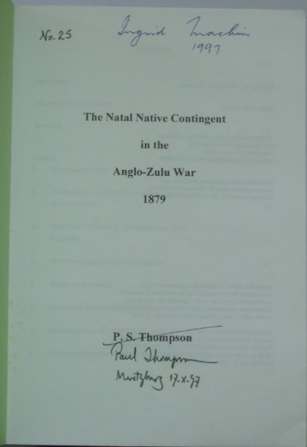 Green card wraps. Front end paper annotated No.25 in same ink as author\'s signature, however there is no indication of limited edition numbers. Owner\'s signature to head of fep. Author\'s signature on title page under his name and dated Maritzburg 17.x.97. vii + 394 pages, with 16 maps, 3 being fold out. A fine clean tighly bound copy