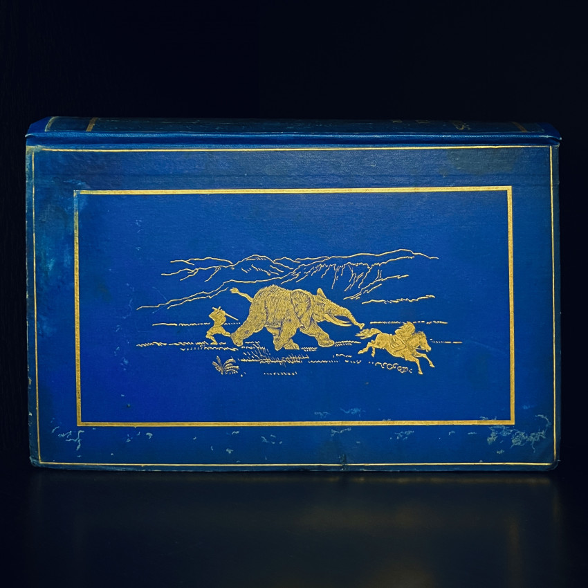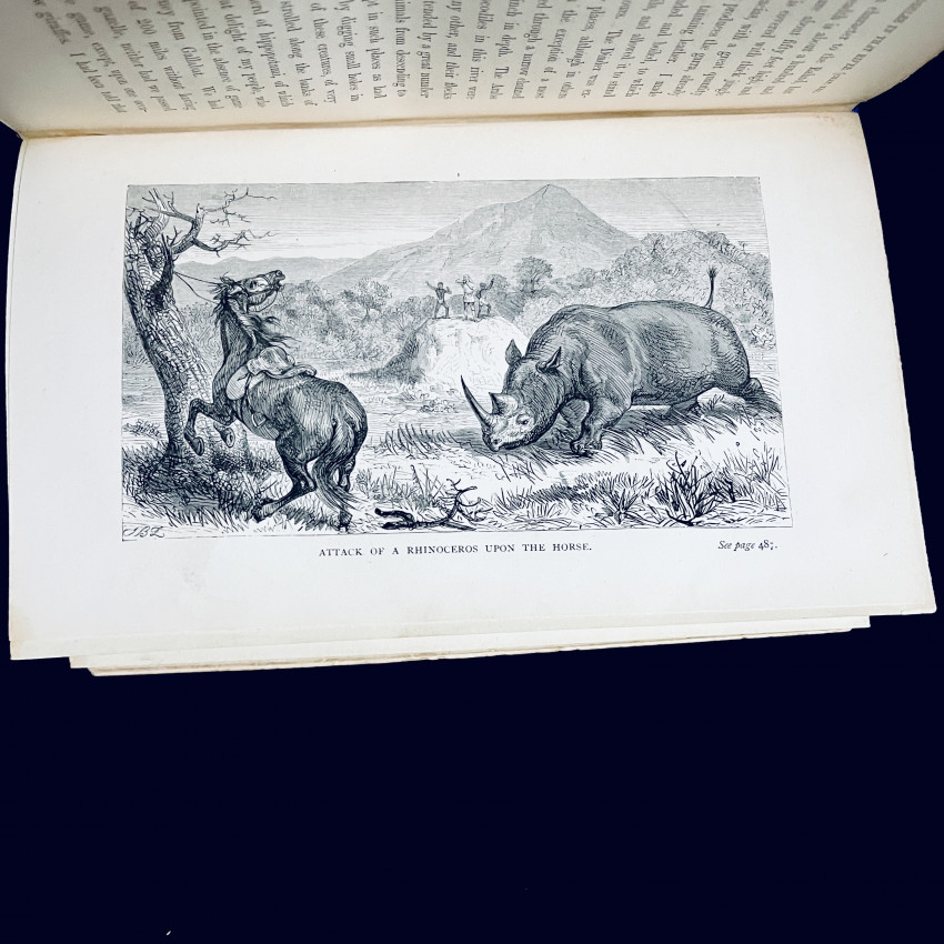 Notice the illustration to the front of the book depicting a man using a sword to ham-string an elephant that is chasing another man on horseback!
