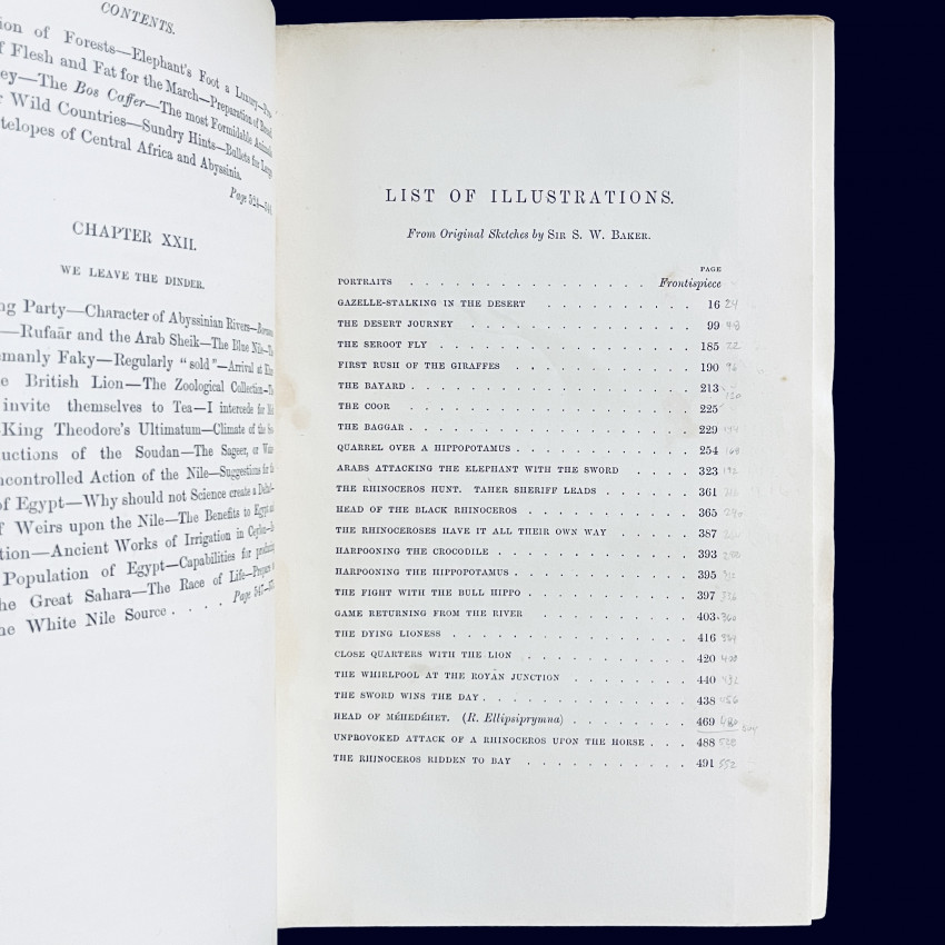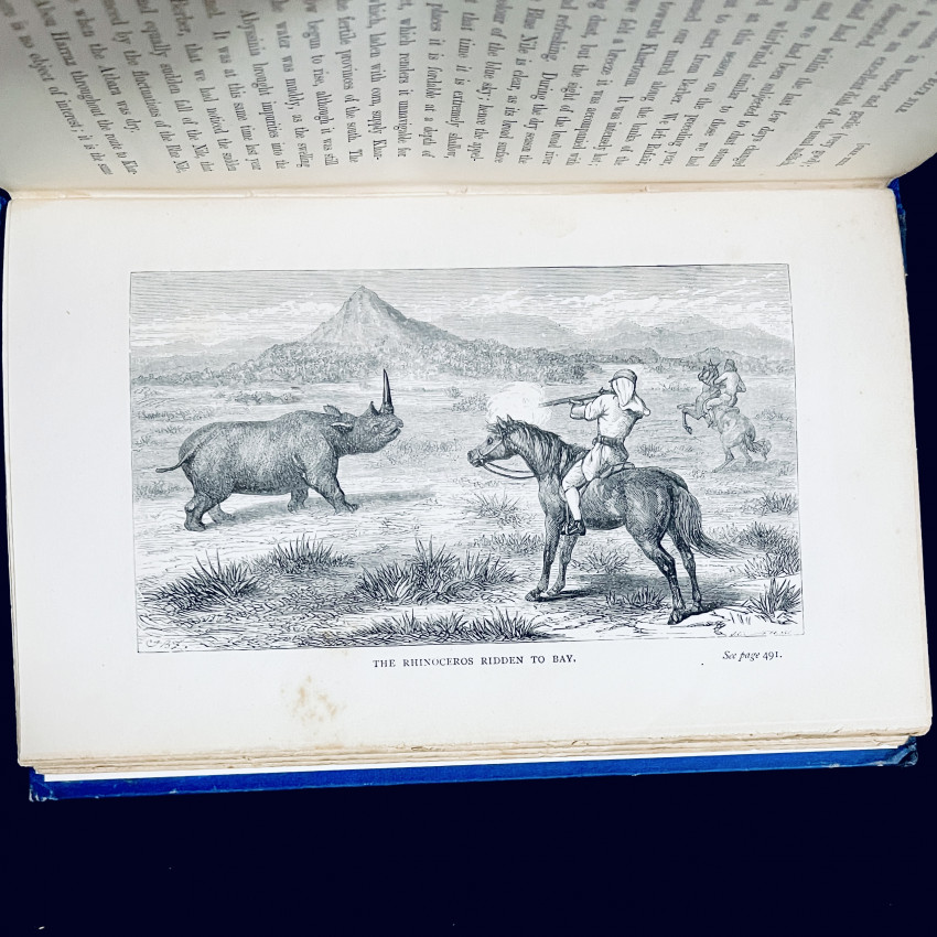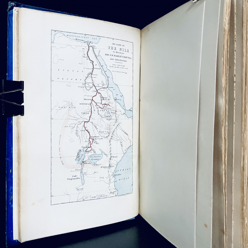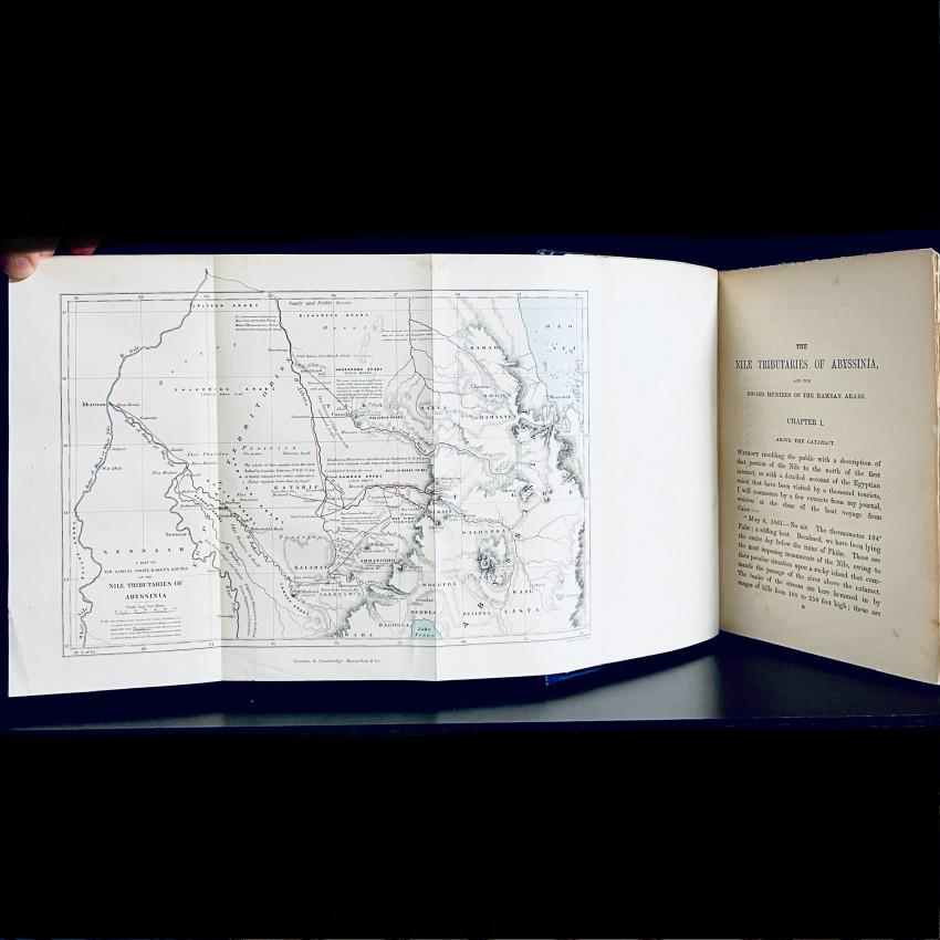 Baker and his young wife, whom he purportedly stole from a slave auction in the Ottoman Empire when he was not the winning bidder, for an entire year explored the many tributaries of the Nile, and learned Arabic in preparation for exploring for the source of the Nile. The Bakers’ subsequent Nile explorations, and meeting John Hanning Speke and James Augustus Grant on their way back from discovering the source of the Nile, is covered in Baker’s THE ALBERT N’YANZA, which was published in 1866 even though the events occurred AFTER the events of THE NILE TRIBUTARIES, first published in 1867.