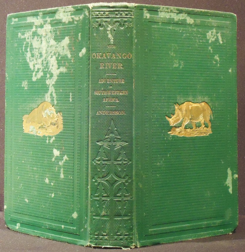 Mendelssohn (Sidney) South African Bibliography volume 1 page 42. A description of a hunting expedition through Namaqualand and Damaraland. Andersson intended to explore these countries right up to the Cunene or Nourse River, but the difficulties of the expedition, though encountered with indomitable courage, proved to be insuperable, and he had to turn back. He obtained, however, much valuable information, and his success as a hunter and collector was unique in this part of the continent. The coast-line of South- West Africa is carefully described, and there is an interesting account of the once-famed guano island, Ichaboe.