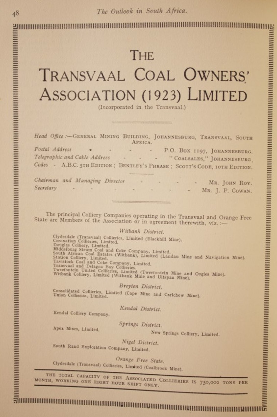 Author's include Sir William Hoy (General Manager, South African Railways), Major E. Stuurman (Postmaster General), H. J. van der Bijl (Chairman, Electricity Supply Commission), Harold J. Laite (General Secretary, S.A. Federated Chamber of Industries), T. G. Trevor (Inspector of Mines, Transvaal), etc.