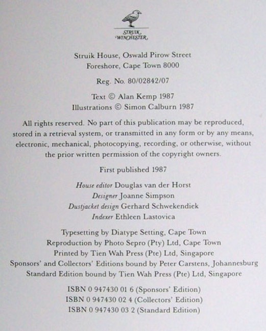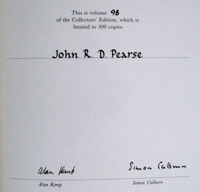 Volume number 98 of the Collectors' Edition limited to 300 copies signed by both the author, Alan Kemp, and the illustrator, Simon Calburn.